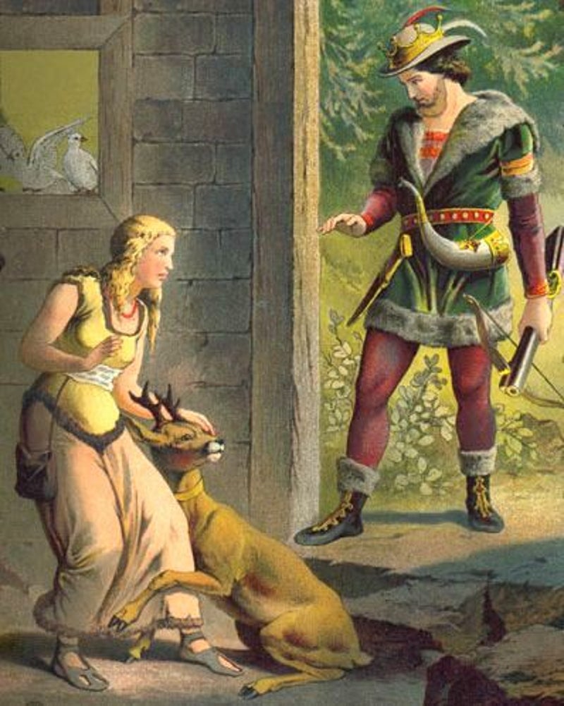 Ik heb het altijd een stomme titel gevonden. Maar zo staat dit sprookje nu eenmaal bekend. 'De betoverde bronnen' zou een betere titel geweest zijn, denk ik. Per slot van rekening drinkt het broertje uit een van de betoverde bronnen en wordt een hert. De illustrator - Jose Luis Macias S - was in de jaren 70 actief, van die tijd ken ik de tekeningen. Op 11 maart 2018 door George Mulder erachter gekomen dat de S voor Sampedro staat. Meestal zat er een witte rand omheen, en dat maakte het apart. Hier echter niet. Kijk bij Illustraties onder Jose Macias S voor meer boeken en tekeningen. De schrijver in dit verhaal heeft er een geitje van gemaakt in plaats van een hertje.