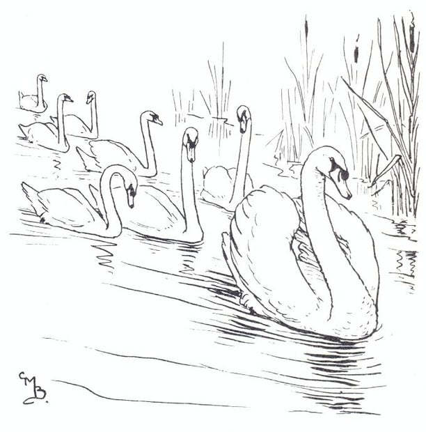 Maar dan hoort ze ineens geklapwiek van vleugels als ze uit haar raampje staart en ze ziet de zwaan, haar eigen zwaan, de Lord of the Rushie River, die haar gevonden heeft.
