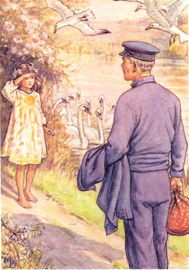 Een boekje van Cecely dat uit elkaar valt en alleen door de omslag bij elkaar wordt gehouden. Voor het eerst gepubliceerd in 1938 en deze editie is van 1976 toen ik hem kreeg. Als kind had ik al een schilderijtje met het plaatje van Susan die de zwaan omhelst. Zo mooi...