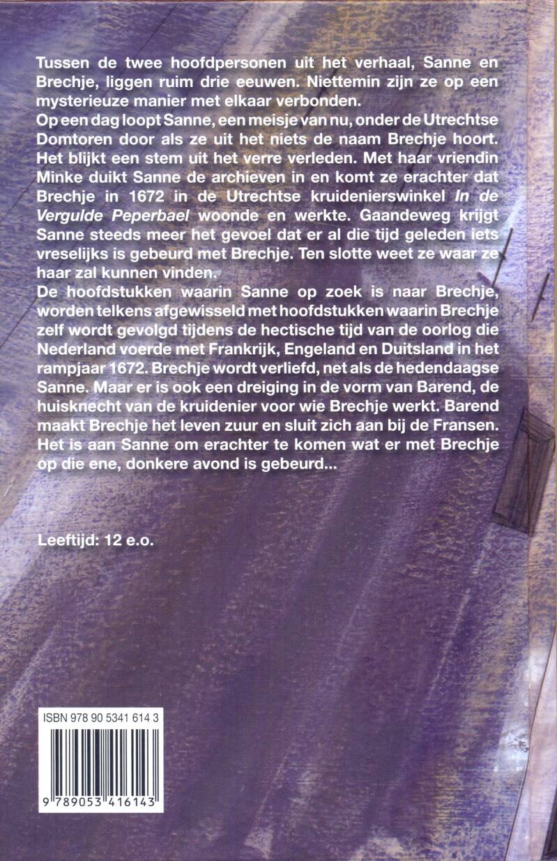 Tussen de twee hoofdpersonen uit het verhaal, Sanne en Brechje, liggen ruim drie eeuwen. Niettemin zijn ze op een mysterieuze manier met elkaar verbonden. Op een dag loopt Sanne, een meisje van nu, onder de Utrechtse Domtoren door als ze uit het niets de naam Brechje hoort. Het blijkt een stem uit het verre verleden. Met haar vriendin Minke duikt Sanne de archieven in en komt ze erachter dat Brechje in 1672 in de Utrechtse kruidenierswinkel In de Vergulde Peperbael (het huidige nummer 54 op de Oudegracht) woonde en werkte. Gaandeweg krijgt Sanne steeds meer het gevoel dat er al die tijd geleden iets vreselijks is gebeurd met Brechje. Ten slotte weet ze waar ze haar zal kunnen vinden.